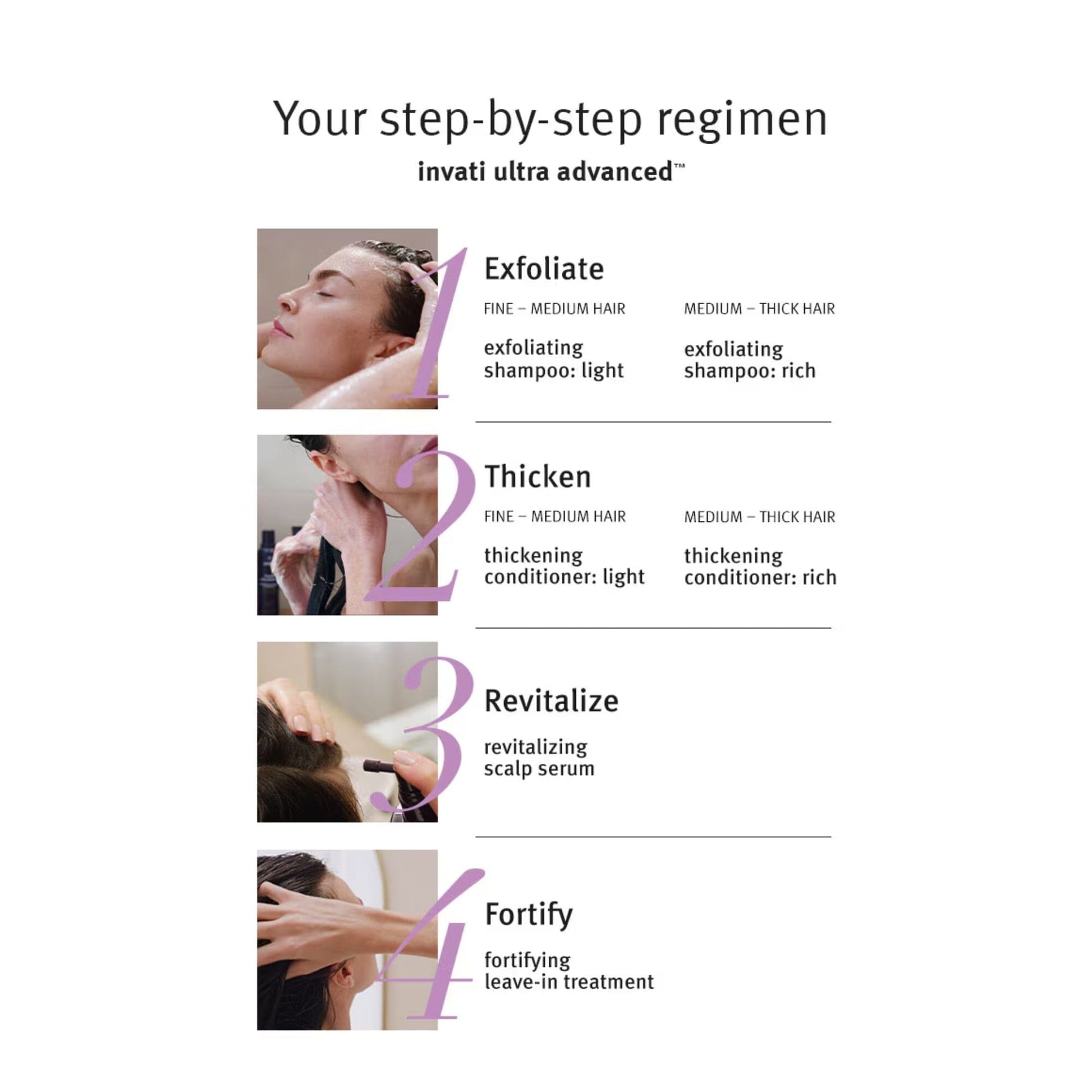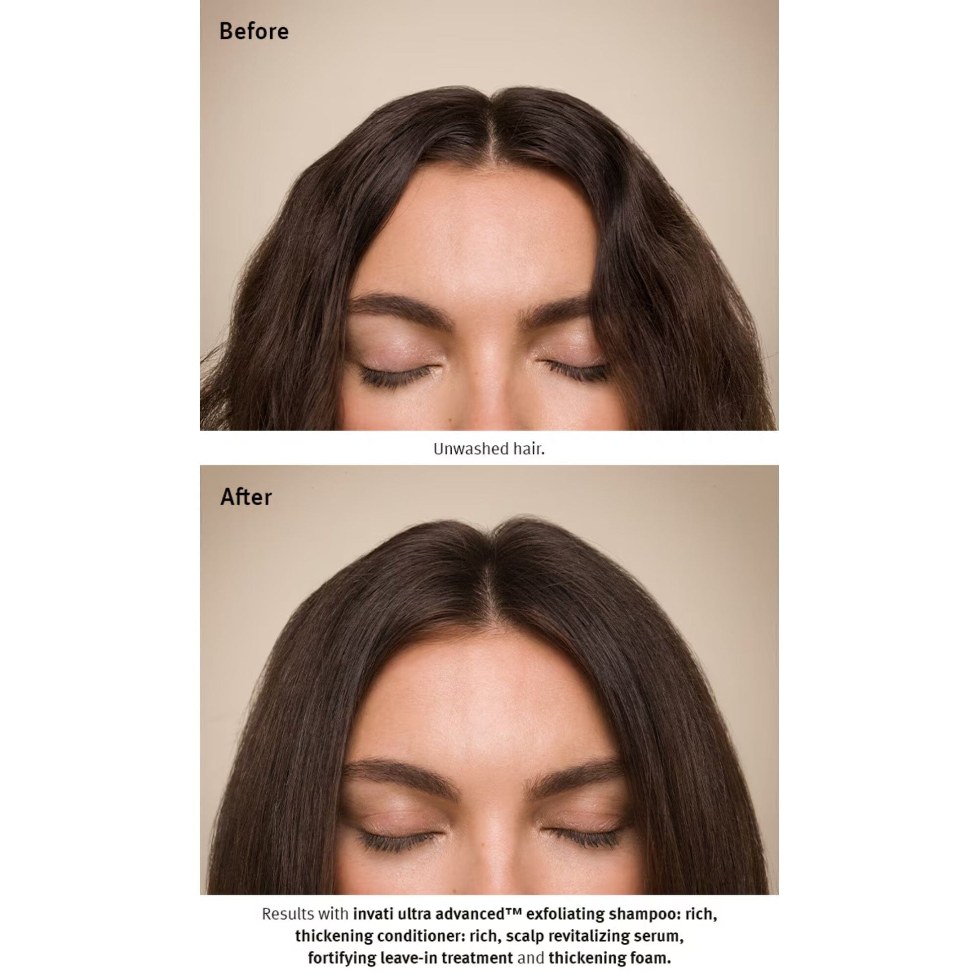 The first step in the routine is this nourishing hair shampoo for thinning hair. It gently exfoliates with wintergreen-derived salicylic acid, removing oil and environmental residues that can clog pores. Gentle and non-irritating to the scalp, the formula creates a rich, creamy lather for a clean, yet nourished feeling. It leaves hair shiny and, when paired with our Rich Thickening Conditioner, helps to soften, smooth, and thicken hair.